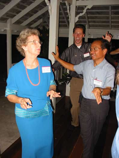 RPCV of Thai I, Emilie Ketudat, dances with Peace Corps Associate Director for