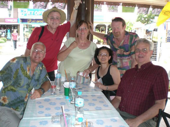 Hua Hin Reunion, July 2008/04.jpgPrevious | Home | NextJohn Trojak, Joe Wright, Mary Jo Wright, Iam Coombs (aka Ajarn Niramon, PC Language Trainer), Chas Algaier, Peter Coombs (Legendary former Training/TEFL Director PC Thailand) -- Thai 63 Thirty-year Reunion, Hua Hin, Thailand, July 2008 |